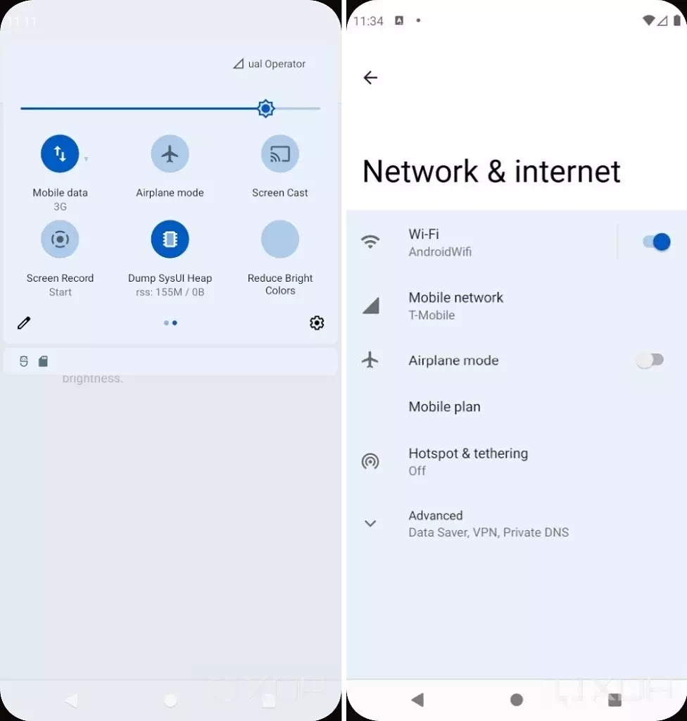 Tampilan app berubah backgroundnya menjadi dim dengan sentuhan warna aksen sistem yang kita pilih. Pengaturan cepat pun kini lebih baik implementasinya daripada rumor kemarin. Fungsi aktif akan berwana aksen biru tebal dan fungsi yang tidak aktif berwana aksen biru cerah.